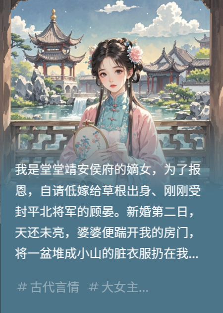 由知名作家“芊月岁岁”创作,《低嫁后,我靠“娇气”把将军府拿捏了》的主要角色为【顾晏顾灵儿】,属于古代言情,大女主,爽文,逆袭,先婚后爱小说,情节紧张刺激,本站无广告干扰,欢迎阅读!本书共计10911字,1章节,更新日期为2025-11-18。该作品目前在本网 【xnufz.com】上完结。小说详情介绍:低嫁后,我靠“娇气”把将军府拿捏了